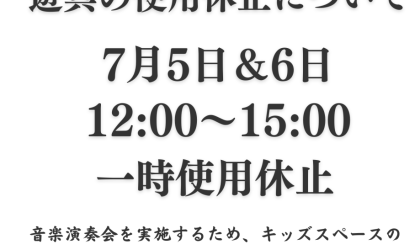 - 【お知らせ】7月5日&6日キッズスペースの利用について