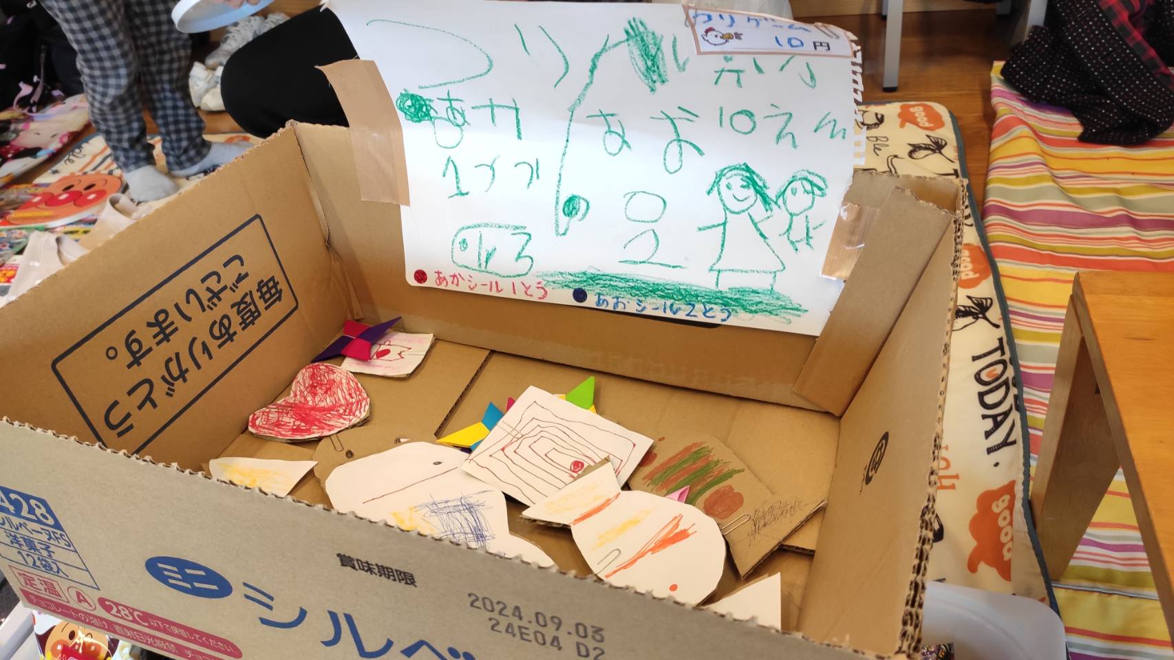 ハンドメイド作品から、縁日にあるようなゲーム、お宝のようなグッズなどを子供たちが一生懸命販売しています。