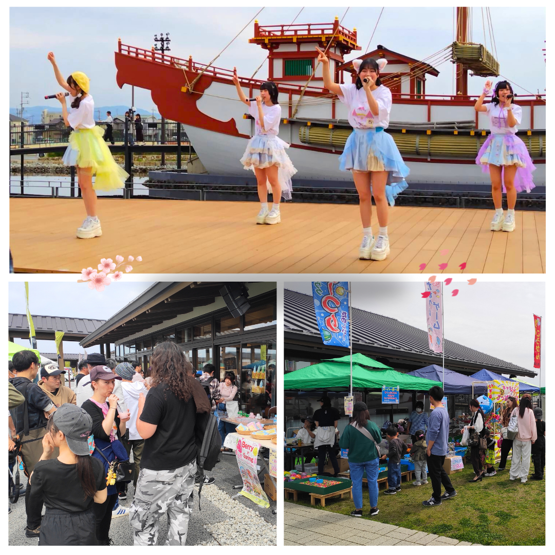 遣唐使船ステージでは、アイドルによる音楽&パフォーマンスが催されており、活気あるステージを囲むように、春をテーマにした様々な商品やサービスを提供していました♪