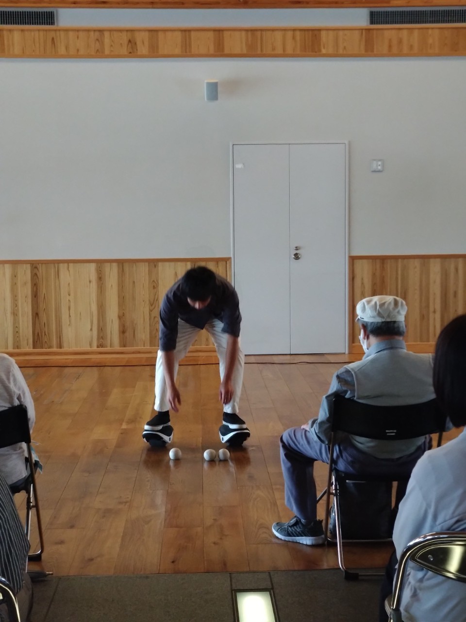 いつもさまざまな技でお客様を驚かせてくれますが、今回はセグウェイに乗りながらお手玉するパフォーマンスを披露してくれました。