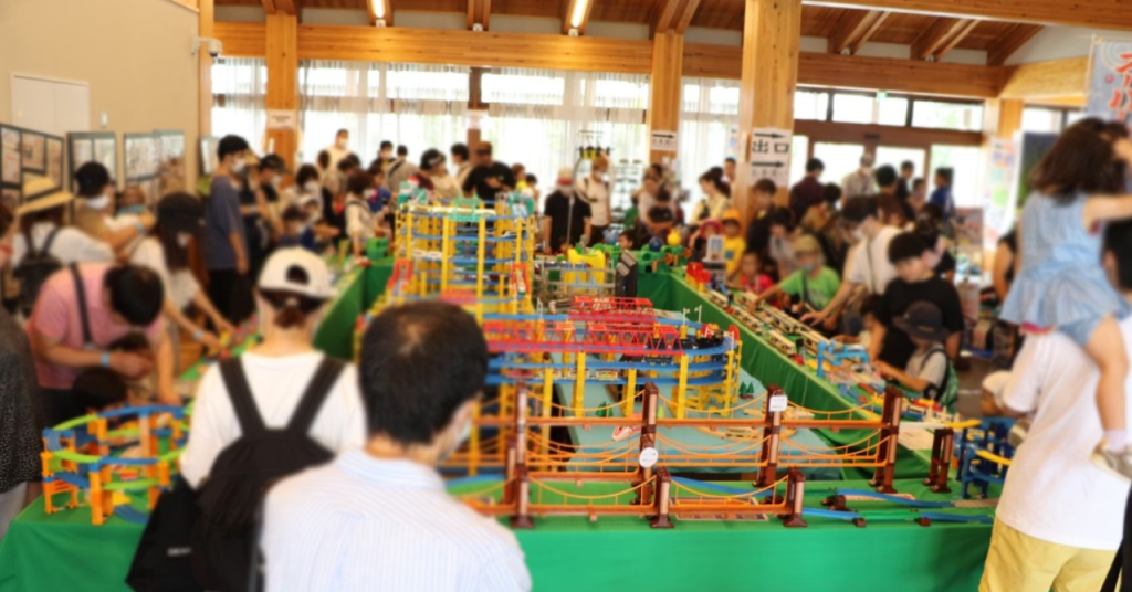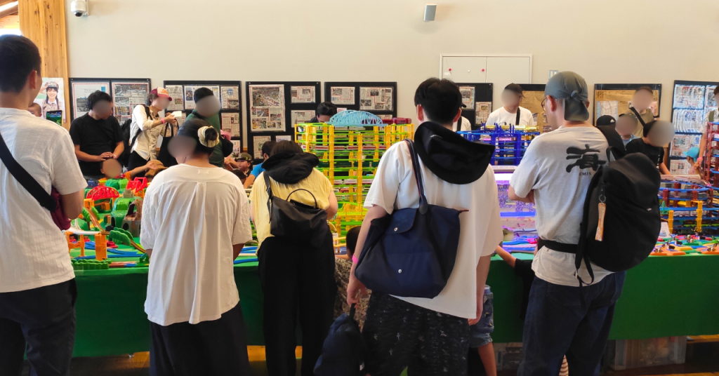 ただでさえ目を引く巨大なトイレールですが、なんとご自宅からお気に入りのトレインレールを持ち込んで、会場で走らせて遊ぶことも可能です!