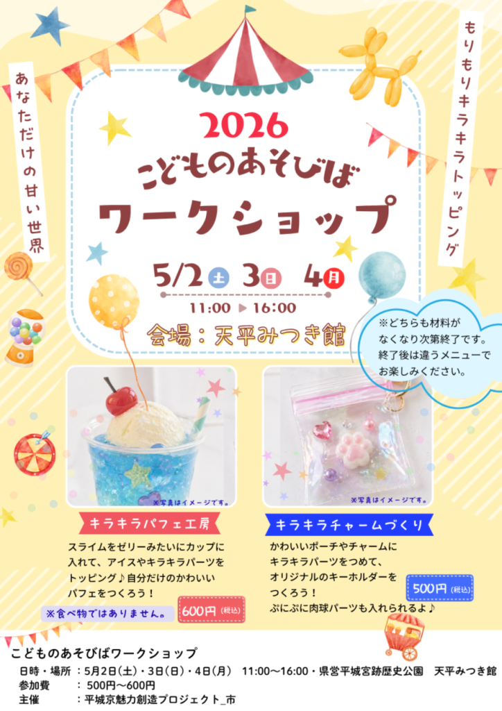 - 【5月2日~4日】ゴールデンウィーク開催!こどものあそびばワークショップ