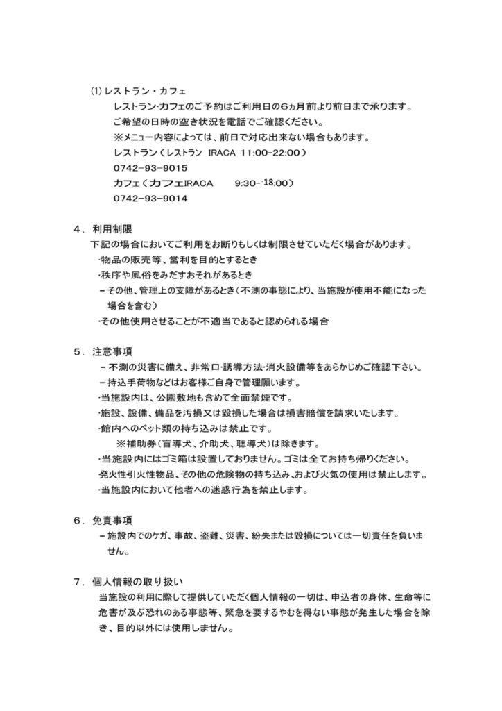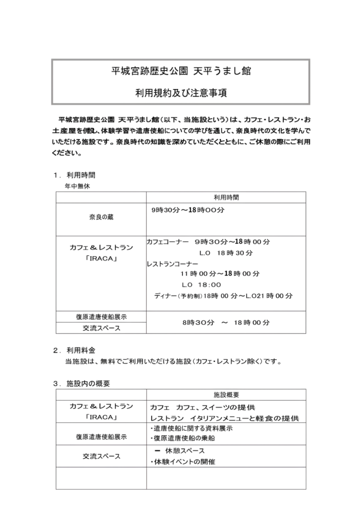 - 平城宮跡歴史公園 天平うまし館 利用規約及び注意事項